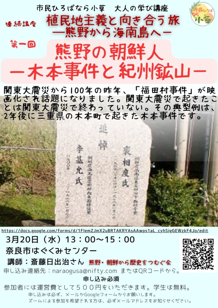 総称 改組三会(三重県木本で虐殺された朝鮮人労働者(イギユン・ペサンド)の追悼碑を建立する会・紀州鉱山の真実を明らかにする会・海南島近現代史研究会)の会報第1号掲載原稿です。